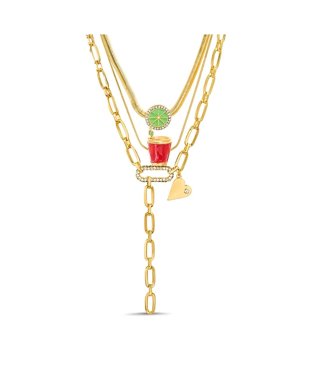 kensie Multi 3 Piece Mixed Chain Necklace Set with Fruit, Heart, Kiss Emoji and Martini Glass Charm Pendants