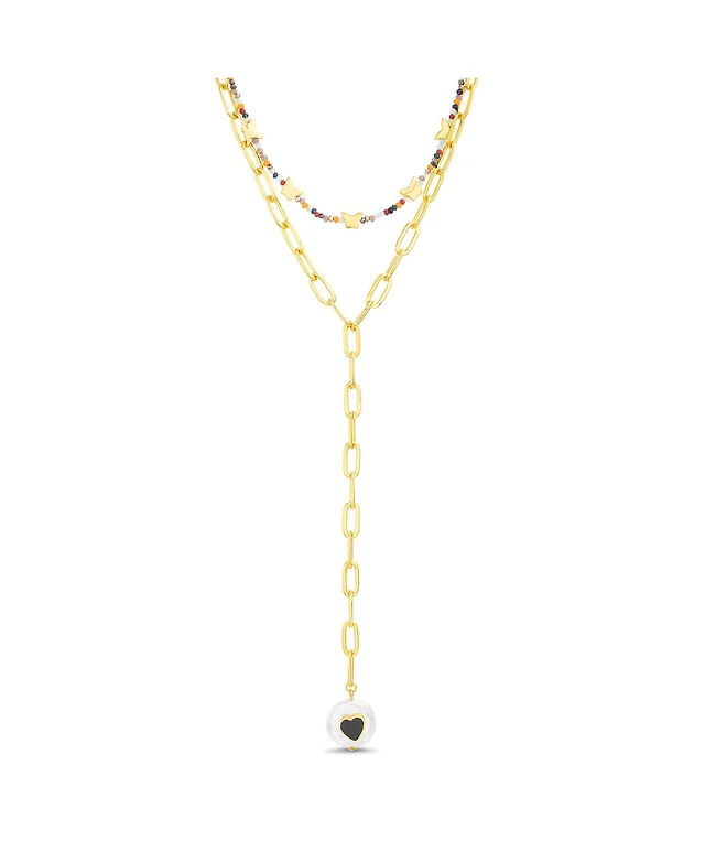 kensie 3 Piece Mixed Chain Necklace Set with Beaded Flowers and Butterfly Pendant