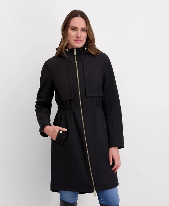 Kensie Women's Shirttail Cinched Waist Hooded Softshell