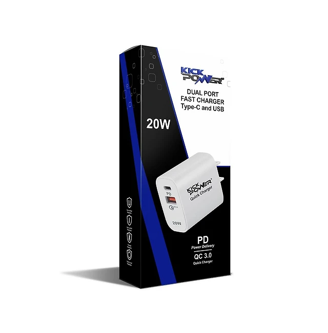 KickPOWER -Wall Charger (Pd & Usb 20 Watt Dual Port) Quick Charger