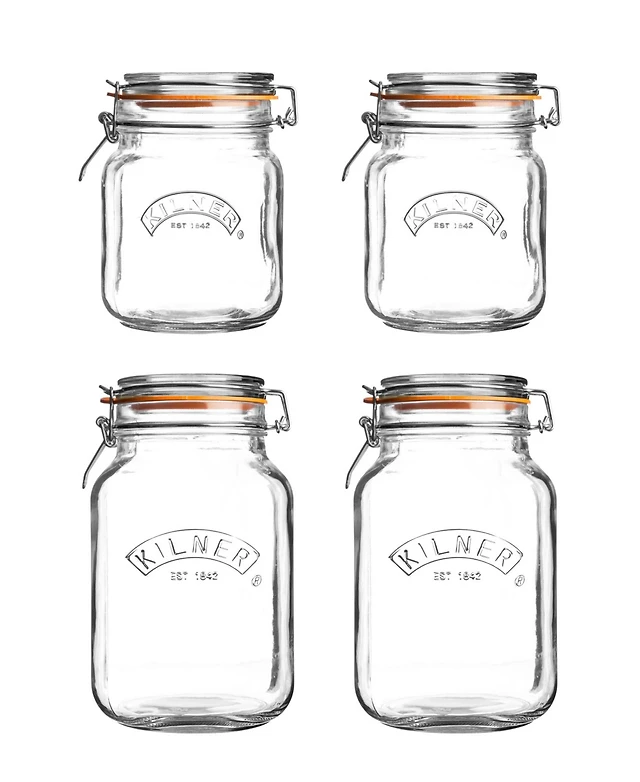 Kilner Round Clip Top Jar 34 oz, Set of 4