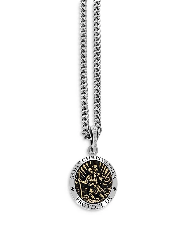 Saint Michael Dog Tag Pendant Necklace, 24"