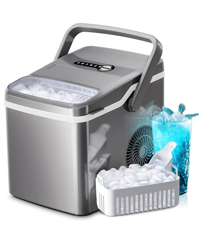 Kismile Ice Makers Countertop,28Lbs/Day,Collapsible Portable Countertop Ice Maker Machine with Handle, 2 Sizes of Ice Cube,9 Pcs/7 Mins,Small Ice Make