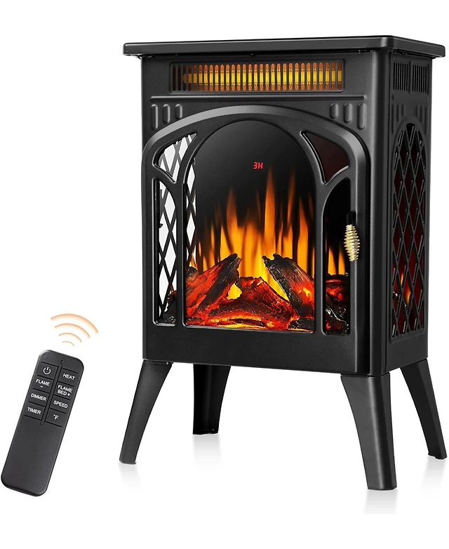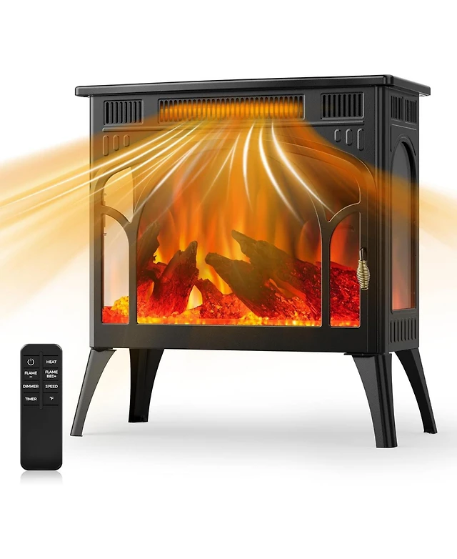 Kismile Electric Fireplace, 1500W infrared heater with 3D flame effect, remote control, 8-hour timer, and 5100 Btu heating. Ideal for freestanding use