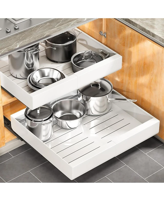 Kitstorack Pull out Cabinet Organizer,Heavy Duty Smooth Sliding Under Cabinet Shelves for Pots and Pans,Roll out Drawers with Thickened Chrome Plating