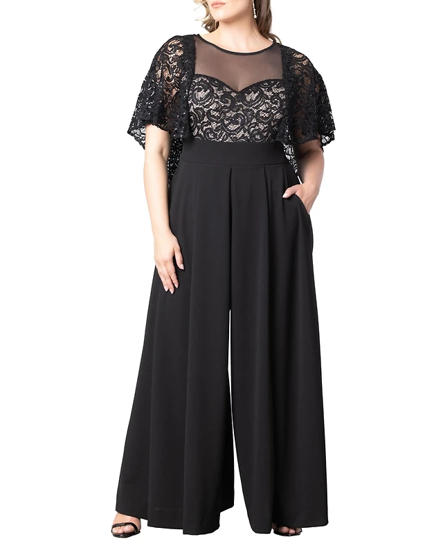 Kiyonna Plus Alluring Sequins Lace Formal Jumpsuit