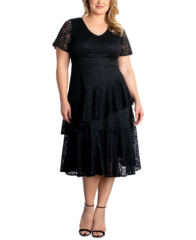 Kiyonna Plus Size Lace Affair Tiered Cocktail Dress