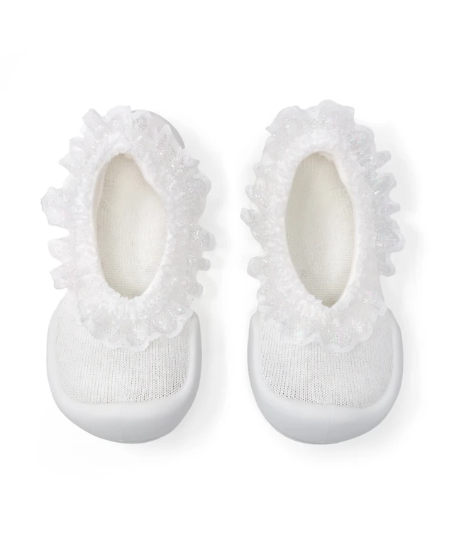 Komuello Toddler First Walk Sock Shoes Flat - Snow Lace