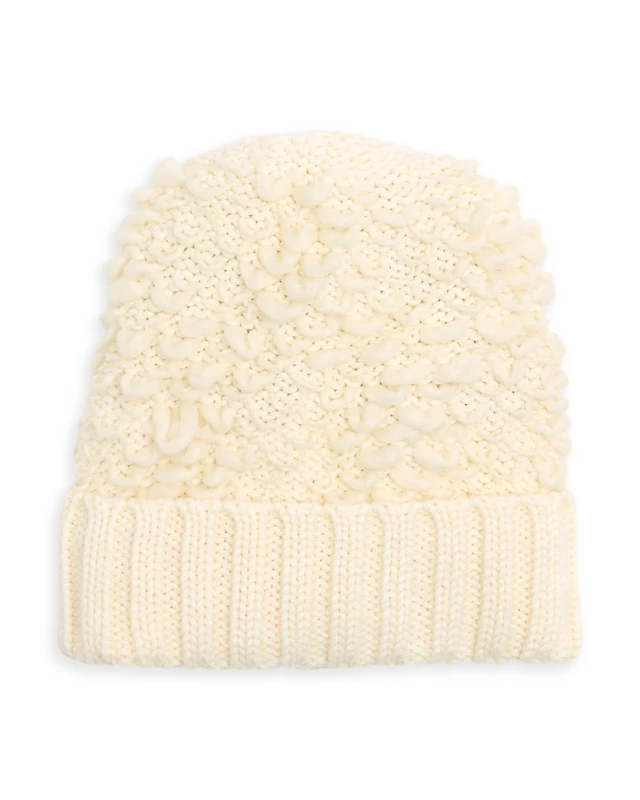 Kyi Kyi Faux Fur Pom Pom Lattice Knit Beanie