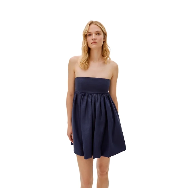 Labeca London Women's Mykonos Navy Linen Strapless Mini Dress