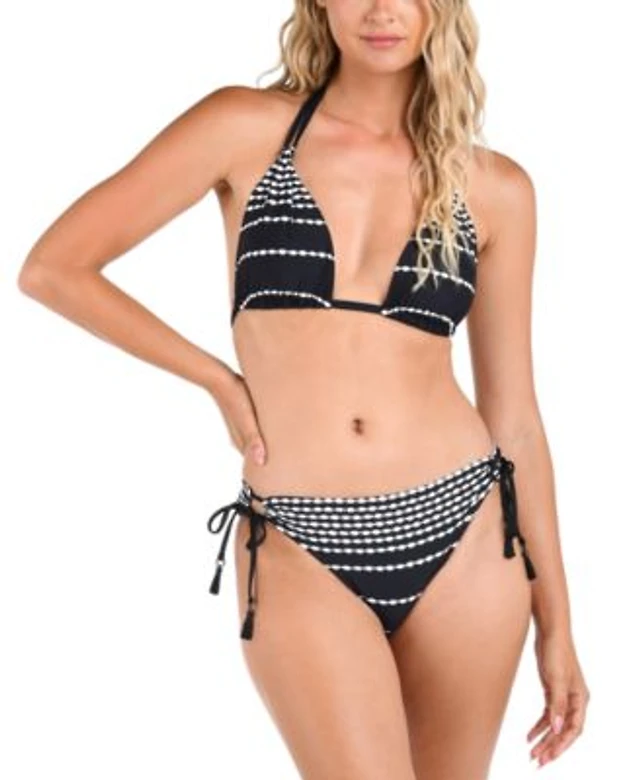 La Blanca Womens City Lights Goddess Halter Bikini Top Tassels Hipster Bikini Bottoms