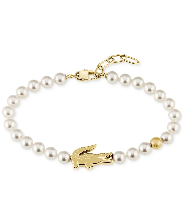 Lacoste Gold-Tone Matchpoint Glass Pearl Strand Bracelet
