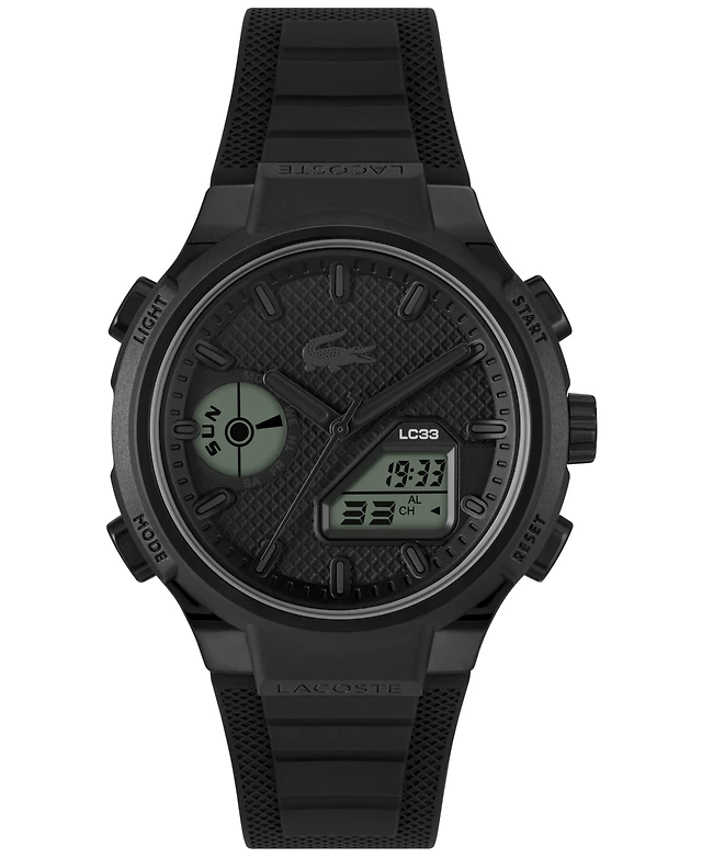 Lacoste Men's LC33 Black Silicone Strap Watch, 44.8mm