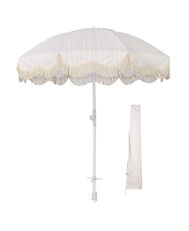 LAGarden 7' Patio Beige Umbrella with Tassels UPF50+ Boho Style 5-Year-Non-Fading for Outdoor,Model:BH7W-01P