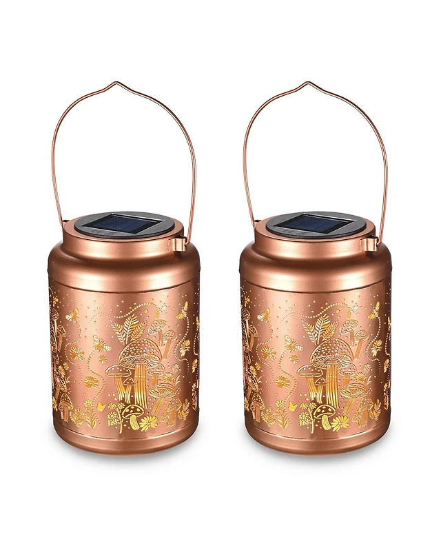 LAGarden Mushroom Solar Lantern Outdoor Hanging Waterproof Metal Decor Light Christmas Gifts Yard Patio Porch 2Pack