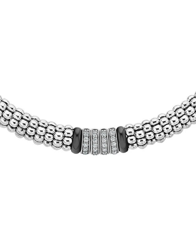 Black Caviar Ceramic Bracelet with Sterling Silver and Diamonds