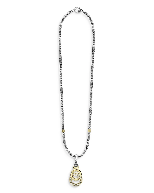 Lagos 18K Yellow Gold & Sterling Silver Diamond Interlocking Ring Pendant Necklace, 18