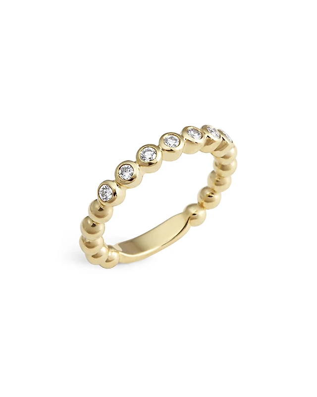 Lagos 18K Yellow Gold Caviar Gold Diamond Bezel Bead Stacking Ring