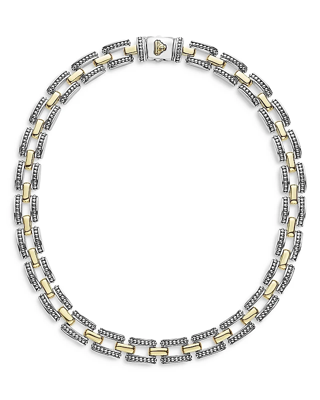 Lagos Sterling Silver & 18K Yellow Gold Caviar Luxe Diamond Link Necklace