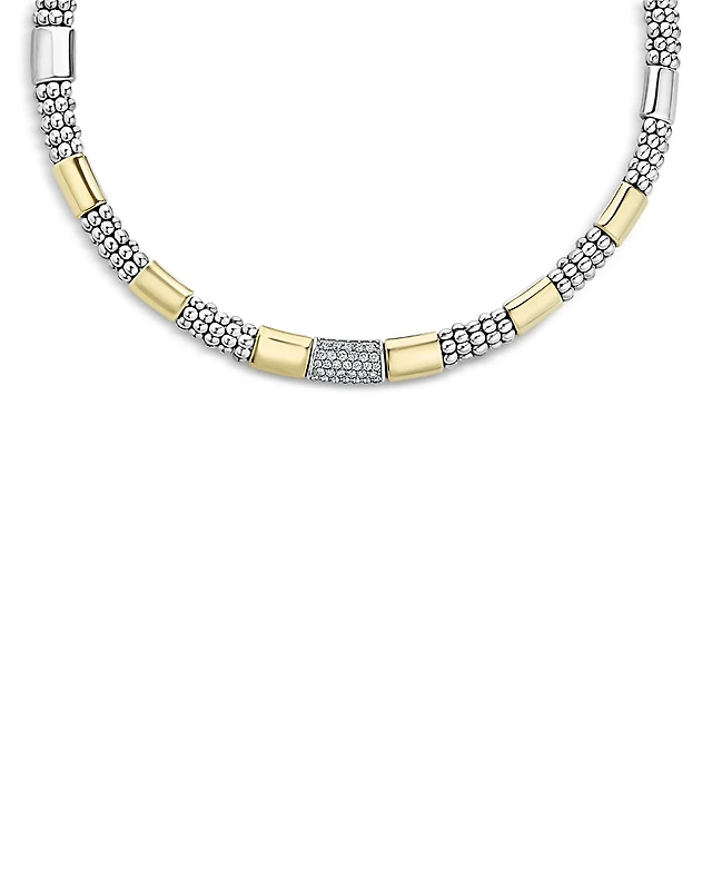 Lagos 18K Yellow Gold & Sterling Silver Signature Caviar Diamond Station Link Collar Necklace, 18