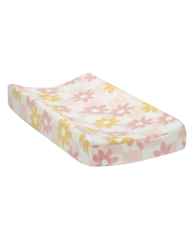 Lambs & Ivy Daisy Dreams Pink/White Checkered Soft Luxury Changing Pad Cover