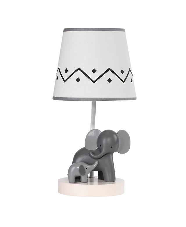 Lambs & Ivy Me & Mama White/Gray Elephant Nursery Lamp with Shade & Bulb