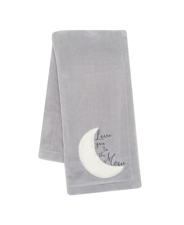 Lambs & Ivy Milky Way Gray/Blue Stars and Planet Minky/Faux Shearling Soft Baby Blanket