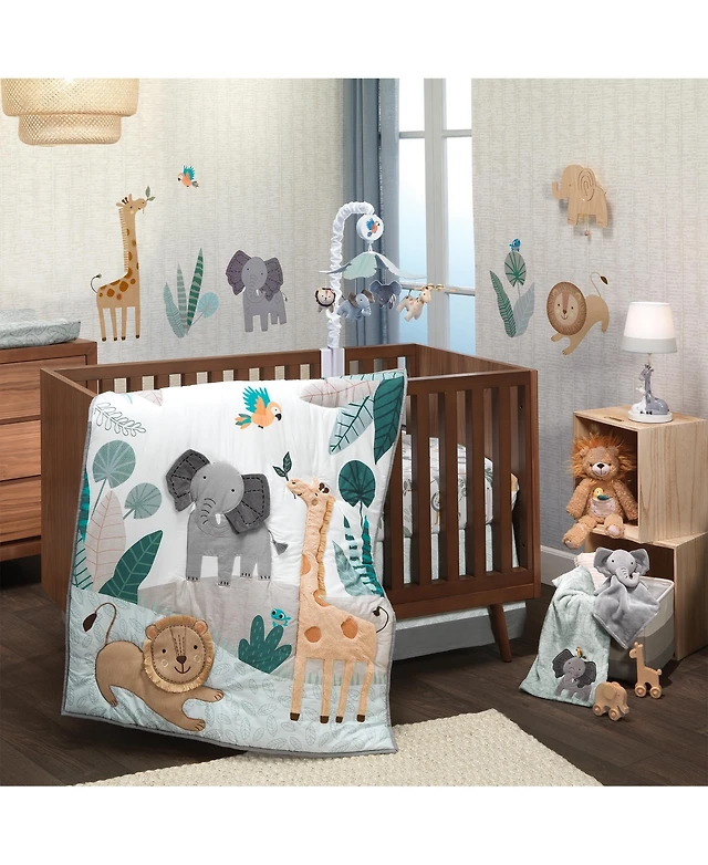 Lambs & Ivy Baby Jungle Animals 4-Piece Gray/White/Taupe Crib Bedding Set