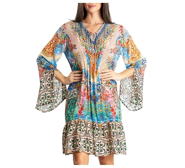 La Moda Clothing Women's V-neck Short Kaftan Dress