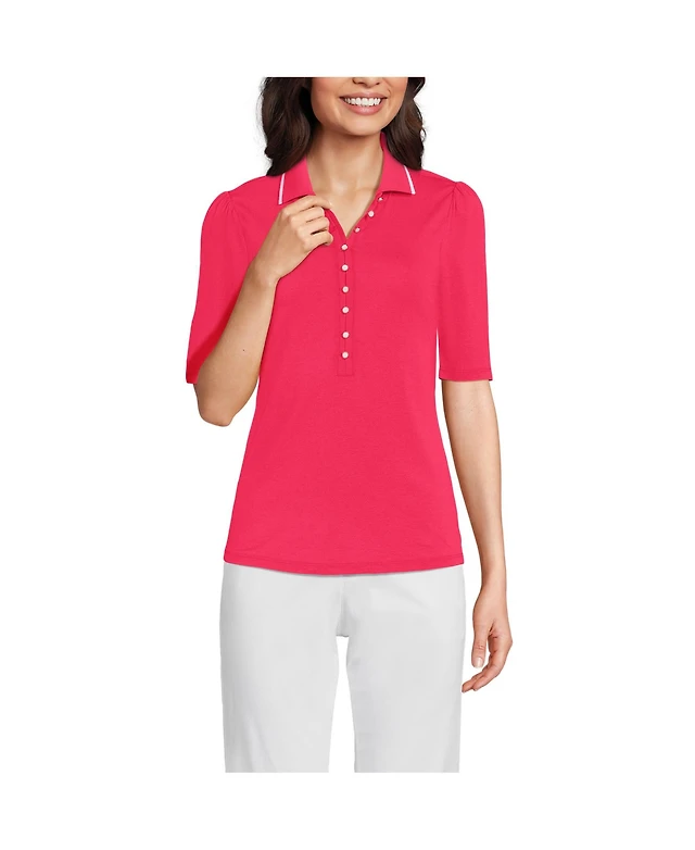 Lands' End Women's Elbow Sleeve Lightweight Jersey Embellished Polo