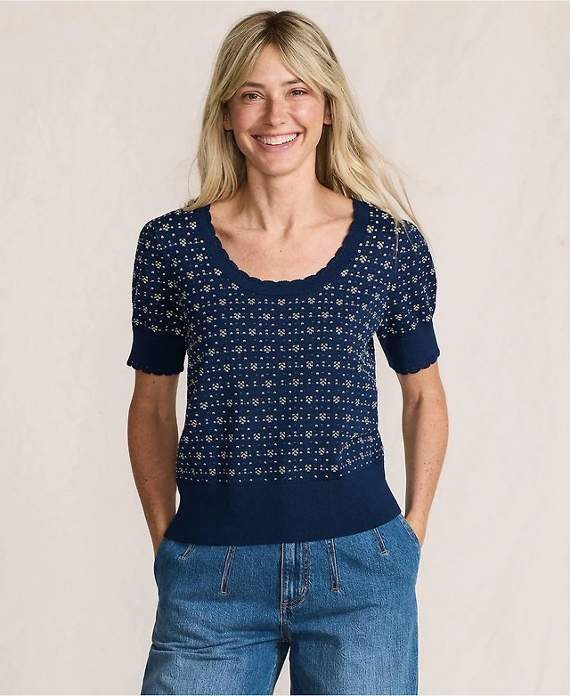 Lands' End Women's Fine Gauge Cotton Jacquard Scoop Neck Sweater