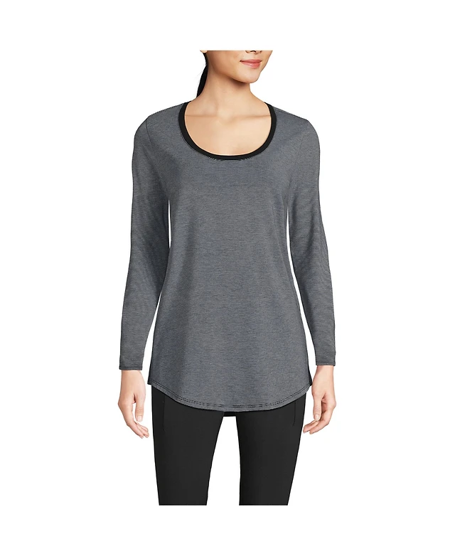 Lands' End Women's Long Sleeve Power Performance Scoop Neck Curved Hem Tunic Tee
