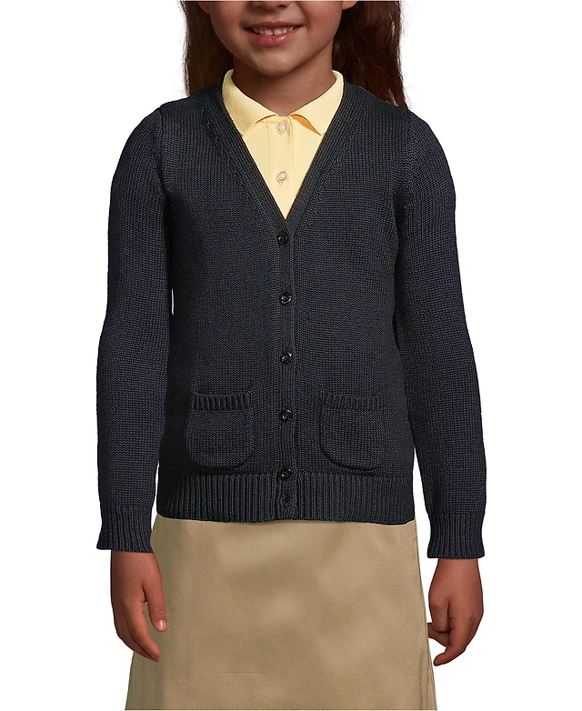 Lands' End Girls School Uniform Cotton Modal Button Front Cardigan Sweater