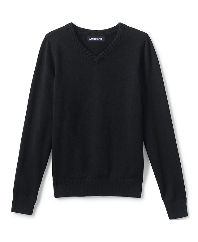Lands' End Boys School Uniform Cotton Modal Fine Gauge V-neck Sweater