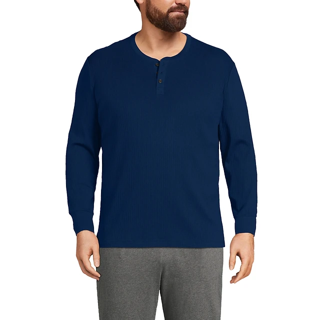 Lands' End Men's Long Sleeve Thermal Waffle Henley