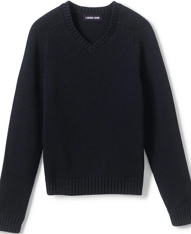 Lands' End Child School Uniform Kids Cotton Modal V-neck Sweater