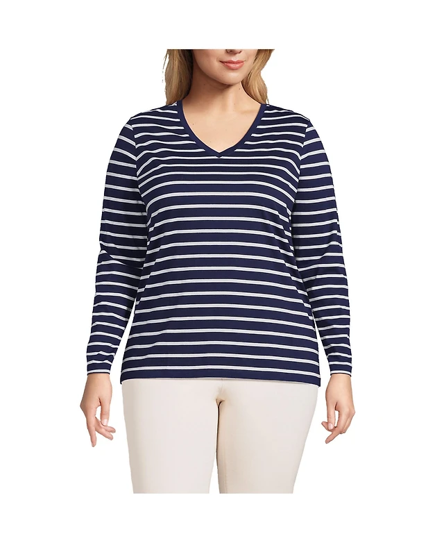 Lands' End Women's Plus Relaxed Supima Cotton Long Sleeve V-Neck T-Shirt