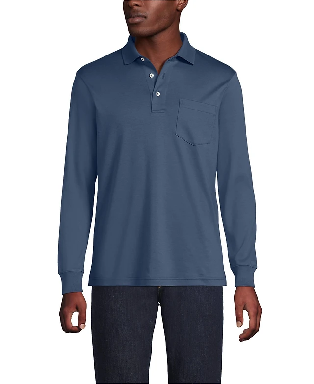 Lands' End Big & Tall Long Sleeve Cotton Supima Polo Shirt with Pocket