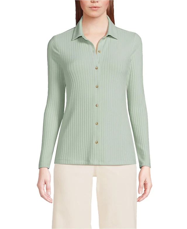 Lands' End Women's Long Sleeve Wide Rib Button Front Polo Shirt