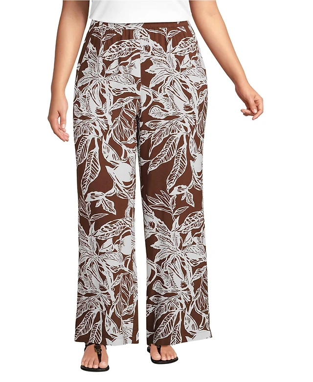 Lands' End Women's Petite Rayon High Rise Wide Leg Pants - Set Bottom