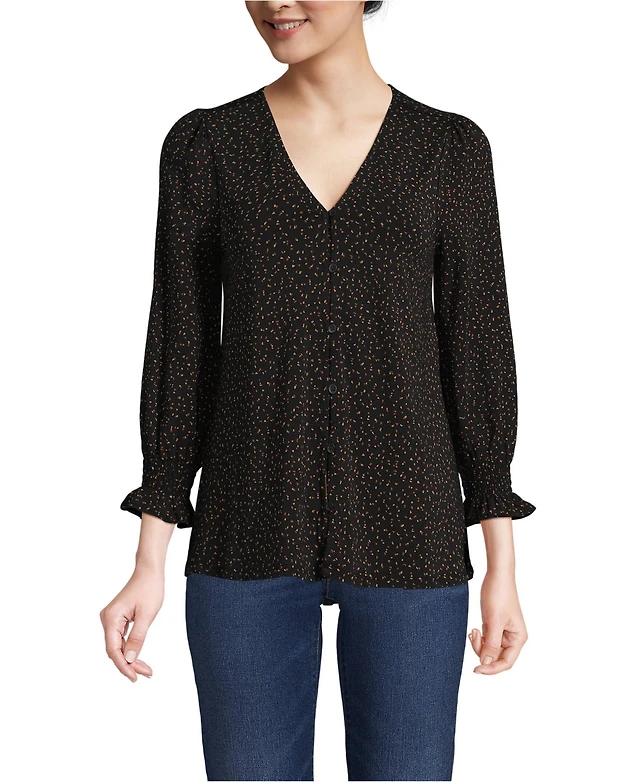 Lands' End Women's 3/4 Sleeve Lightweight Jersey Button Front Top