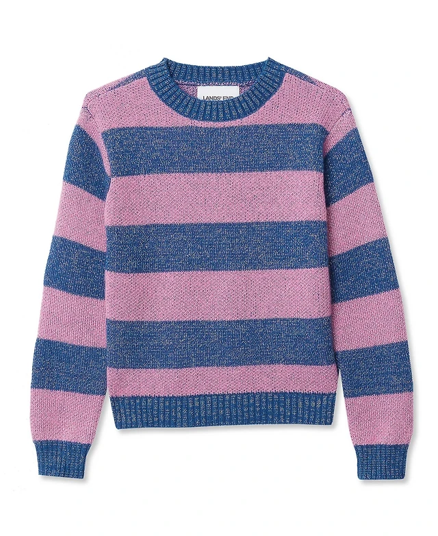 Lands' End Women's Cotton Blend Marl Ribbed Crew Neck Sweater