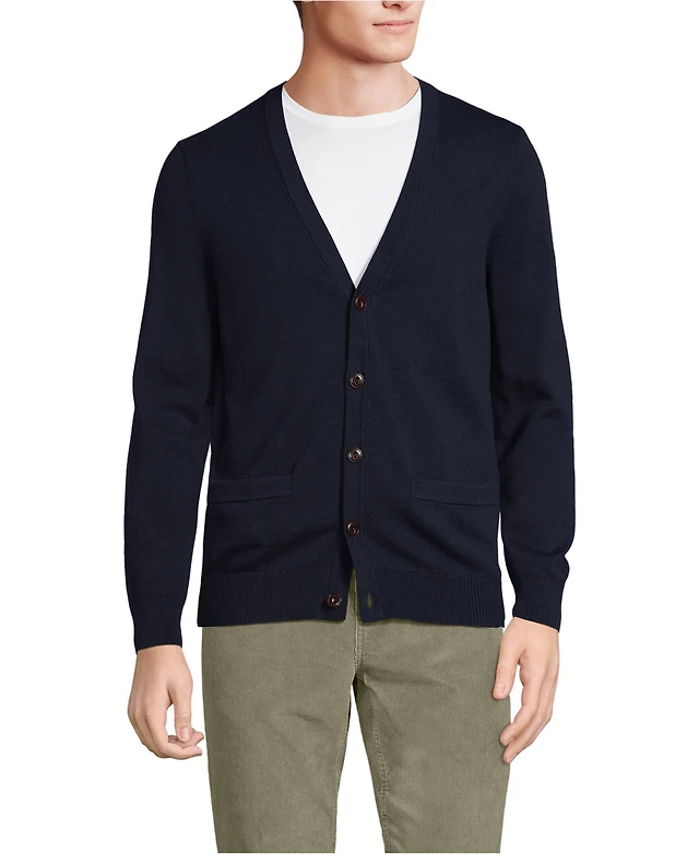 Lands' End Men's Fine Gauge Cotton V Neck Sweater