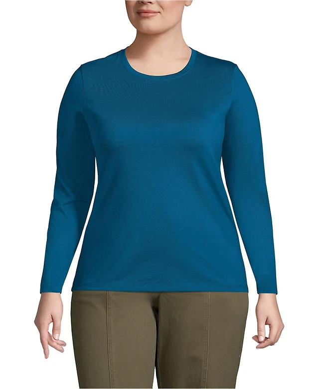 Lands' End Plus Relaxed Supima Cotton Long Sleeve Crew Neck T-Shirt