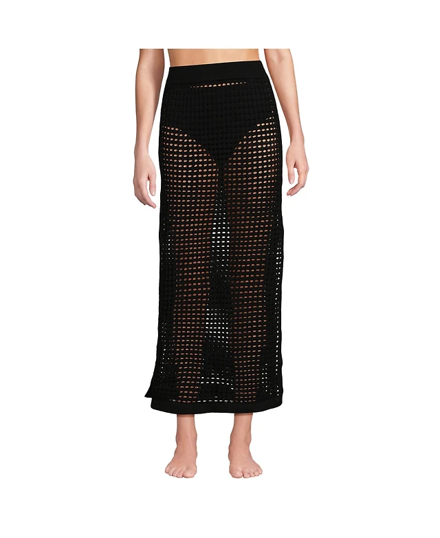 Lands' End Women's Cotton Open Knit Maxi Swim Cover-up Skirt