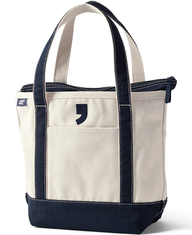 Lands' End Medium Embroidered 5 Pocket Zip Top Canvas Tote Bag