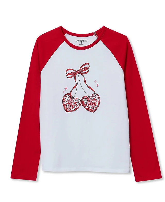 Lands' End Girls Long Sleeve Raglan Graphic T-Shirt
