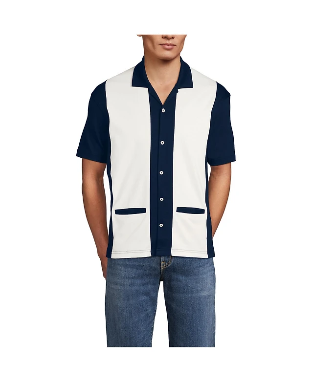 Lands' End Men's Short Sleeve Supima Retro Camp Collar Button Through Shirt