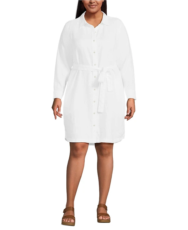 Lands' End Women's Plus Long Sleeve Linen Shirt Dress