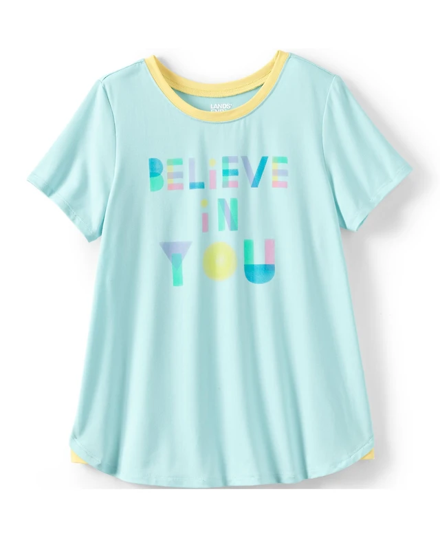 Lands' End Big Girls Plus Short Sleeve Curved Hem Graphic Tee Shirt